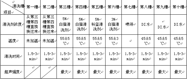 LCD后清洗工藝參數(shù):